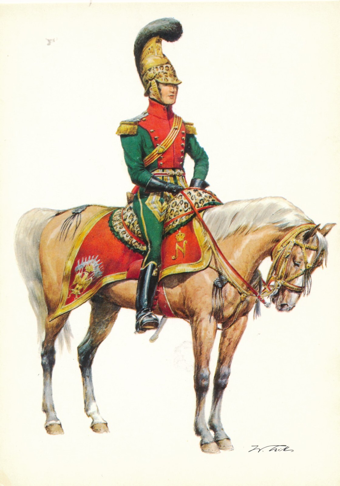 AK Uniform Kaiserr. Frankreich 1811 Chevauleger Major Ansichtskarte (8723)