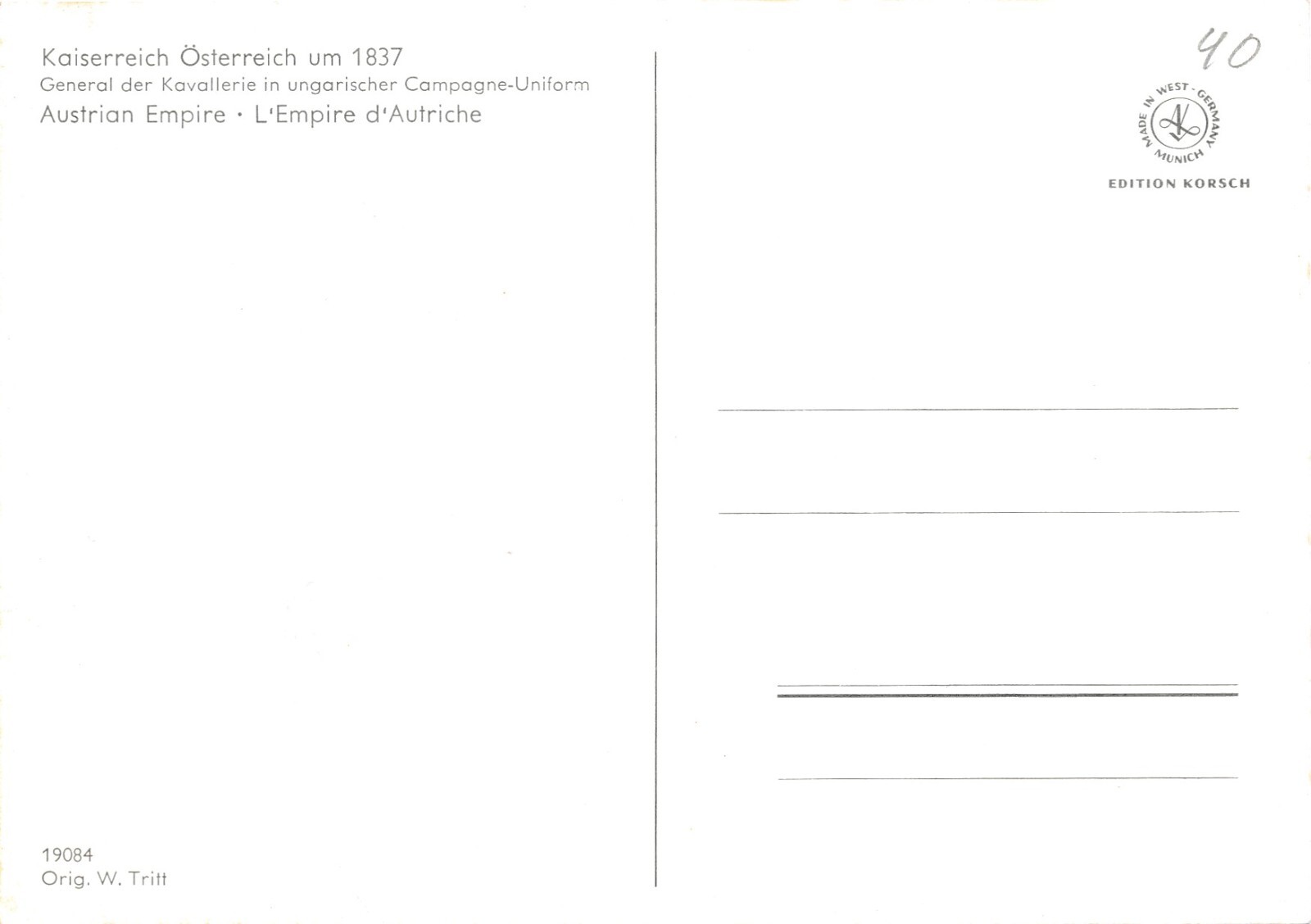 AK Uniform Kaiserr. Österr 1837 General der Kavallerie Ansichtskarte (8721)