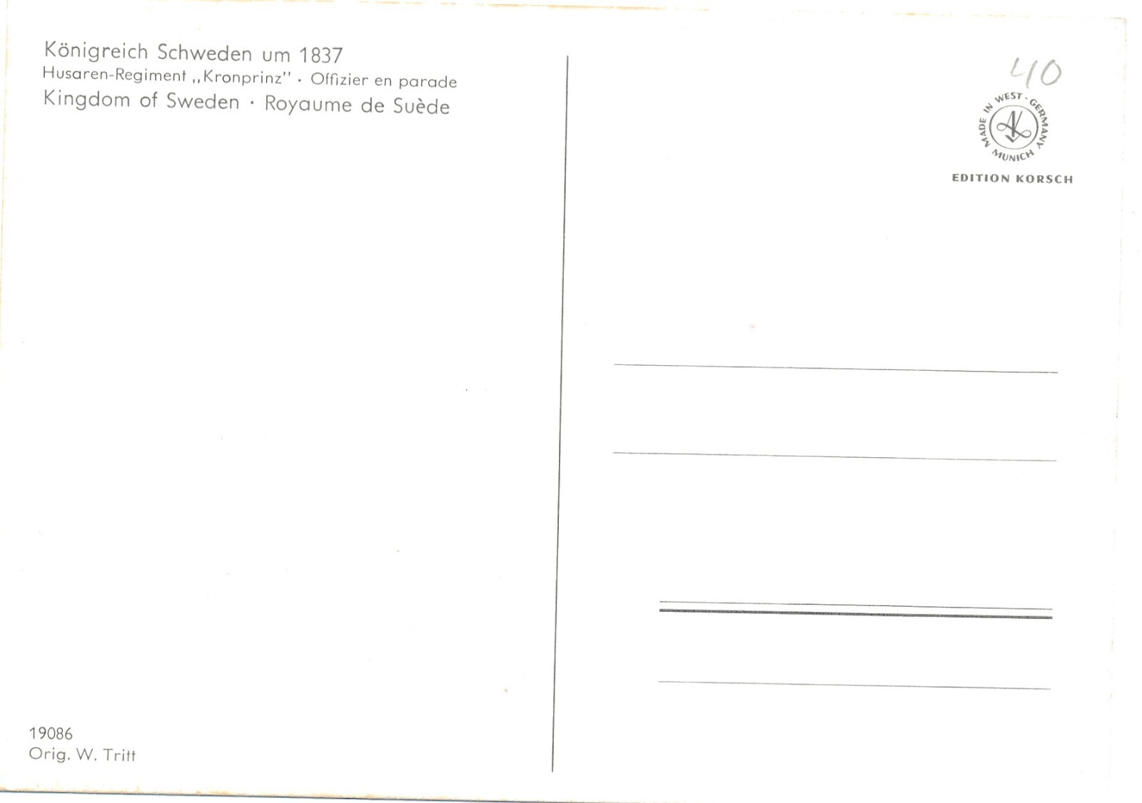 AK Uniform Kaiserr. Schweden 1837 Husaren reg. Offizier Ansichtskarte (8729)