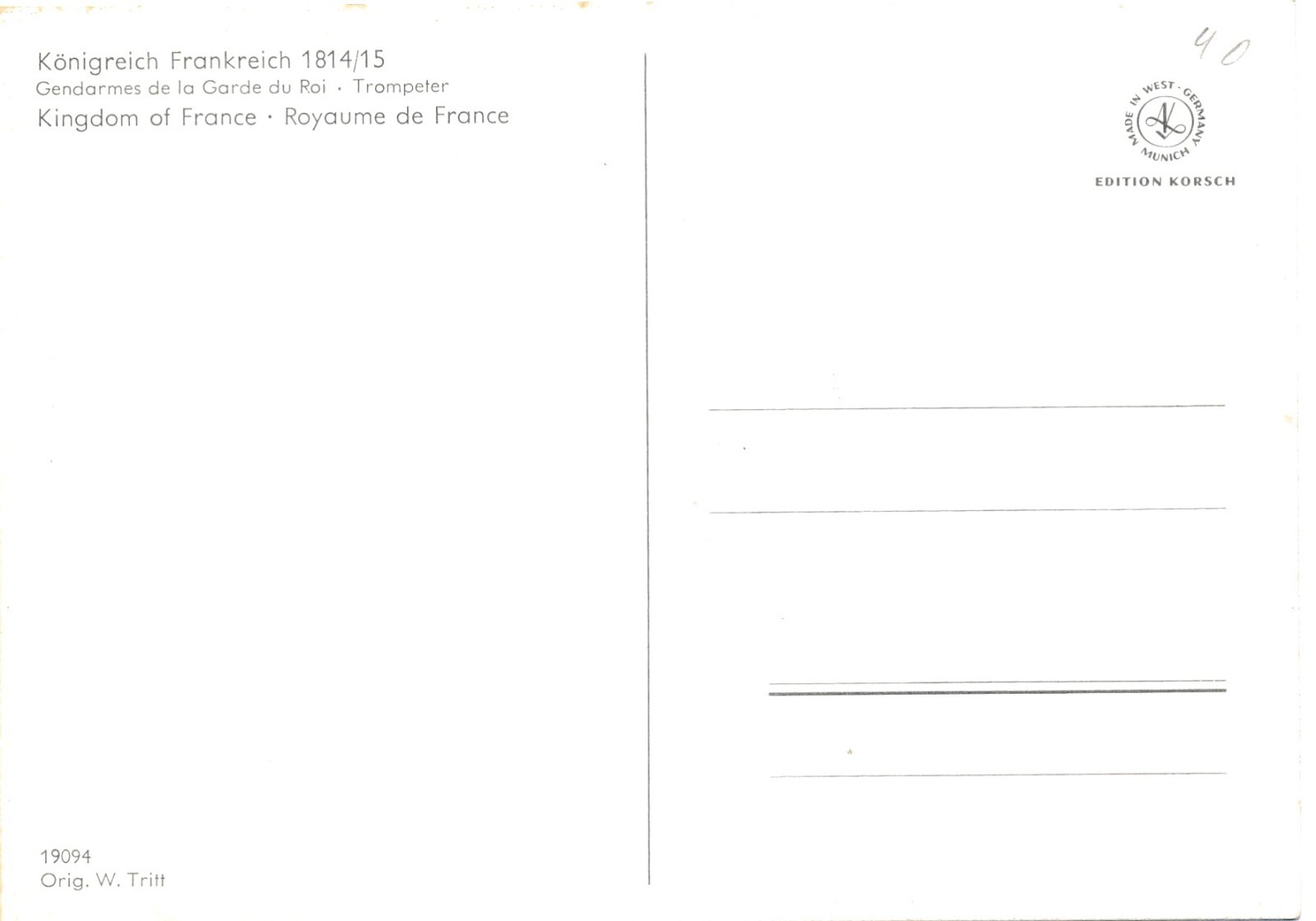 AK Uniform Königreich Frankreich 1814 Gendarmes Trompeter Ansichtskarte (8706)