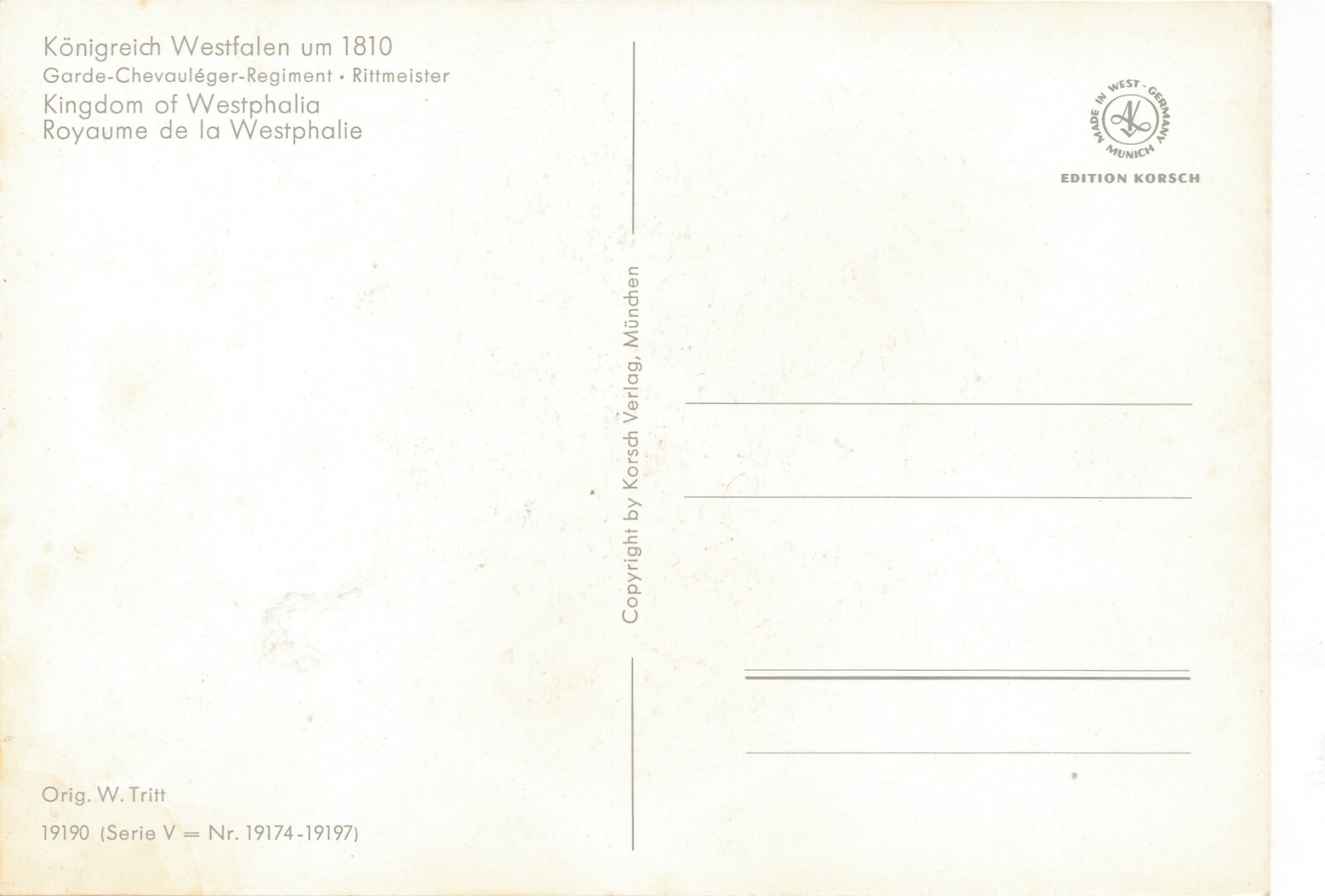 AK Uniform Königreich Westfalen 1810 Garde Rittmeister Ansichtskarte (8711)