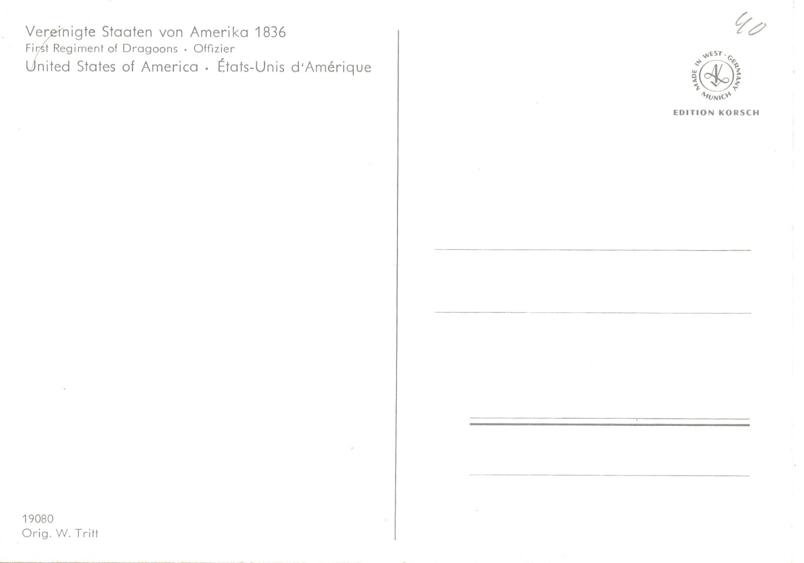 AK Uniform USA Amerika 1836 Dragoons Offizier Ansichtskarte (8696)