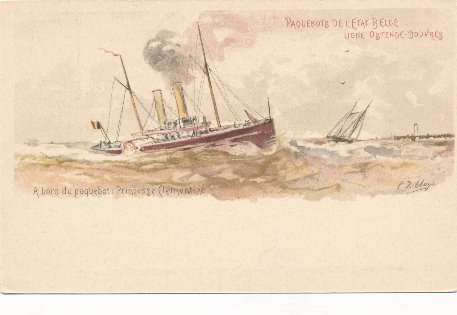 AK vom Dampfer A bord du paquebot Princesse De letat Belge Ansichtskarte (12717)