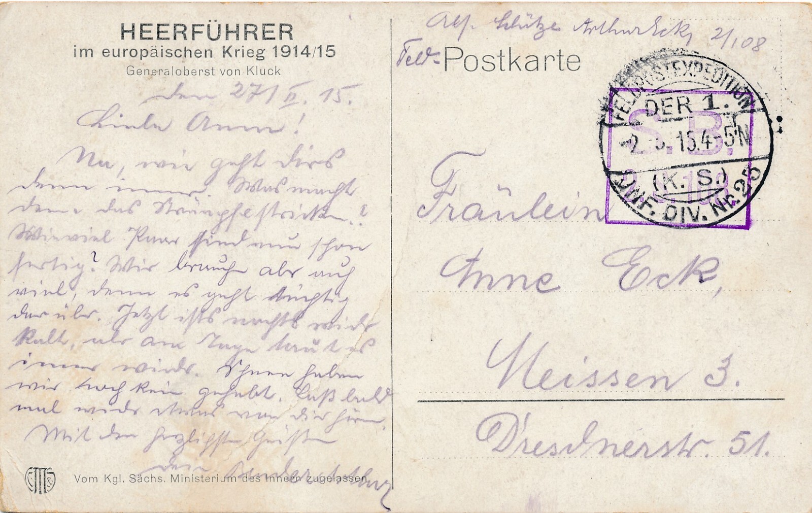 AK vom Heerführer Generaloberst von Kluck (10233)