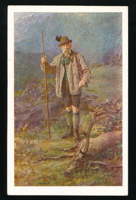 AK vom Kaiser Franz Josef bei der Jagt mit erlegtem Hirsch (5592)