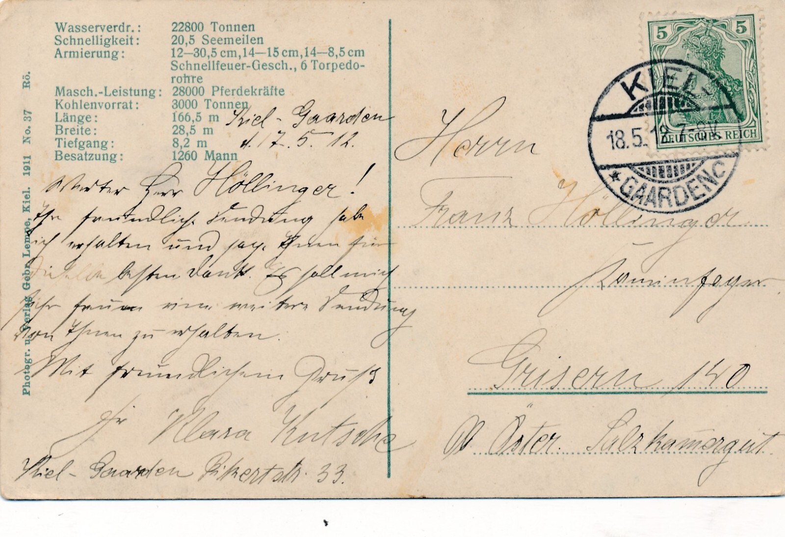 AK vom S.M. Linienschiff Thüringen Kriegsschiff (7237)