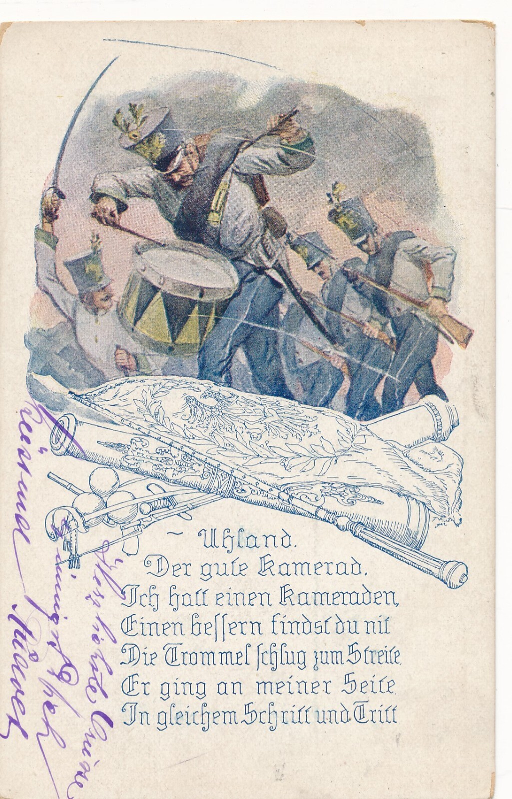 AK von Soldaten Trommler unter Beschuss Ansichtskarte (13895)
