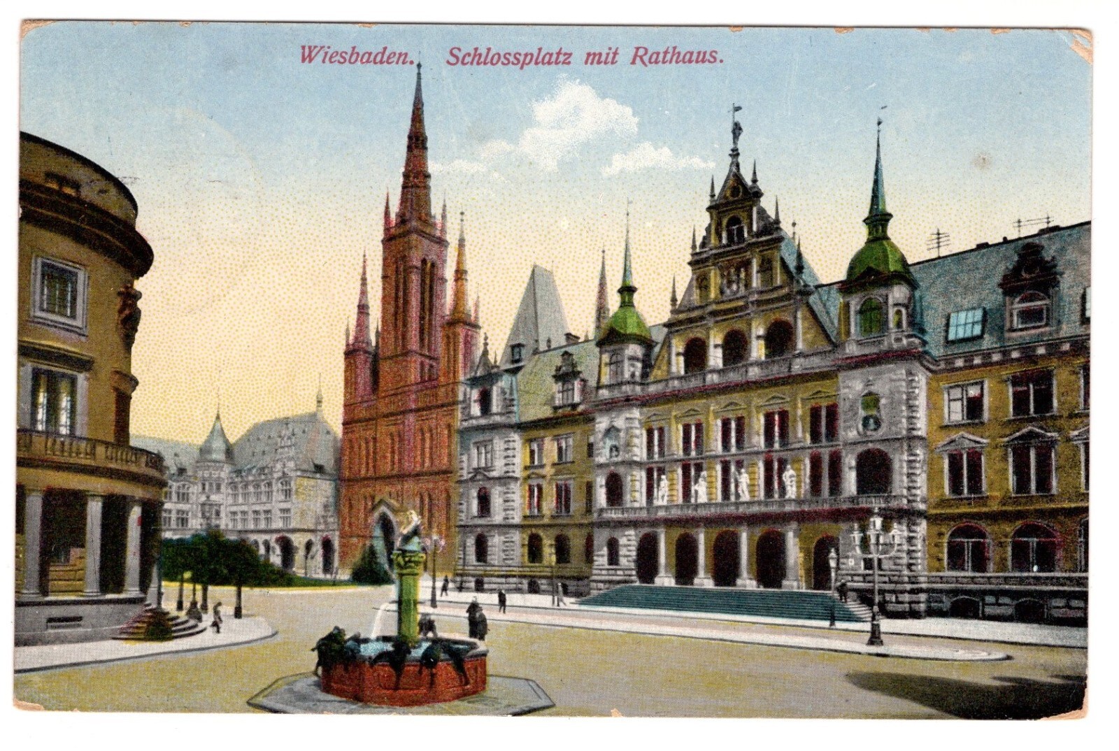 AK, Wiesbaden, Schlossplatz mit Rathaus, Hessen, Ansichtskarte (S7404)