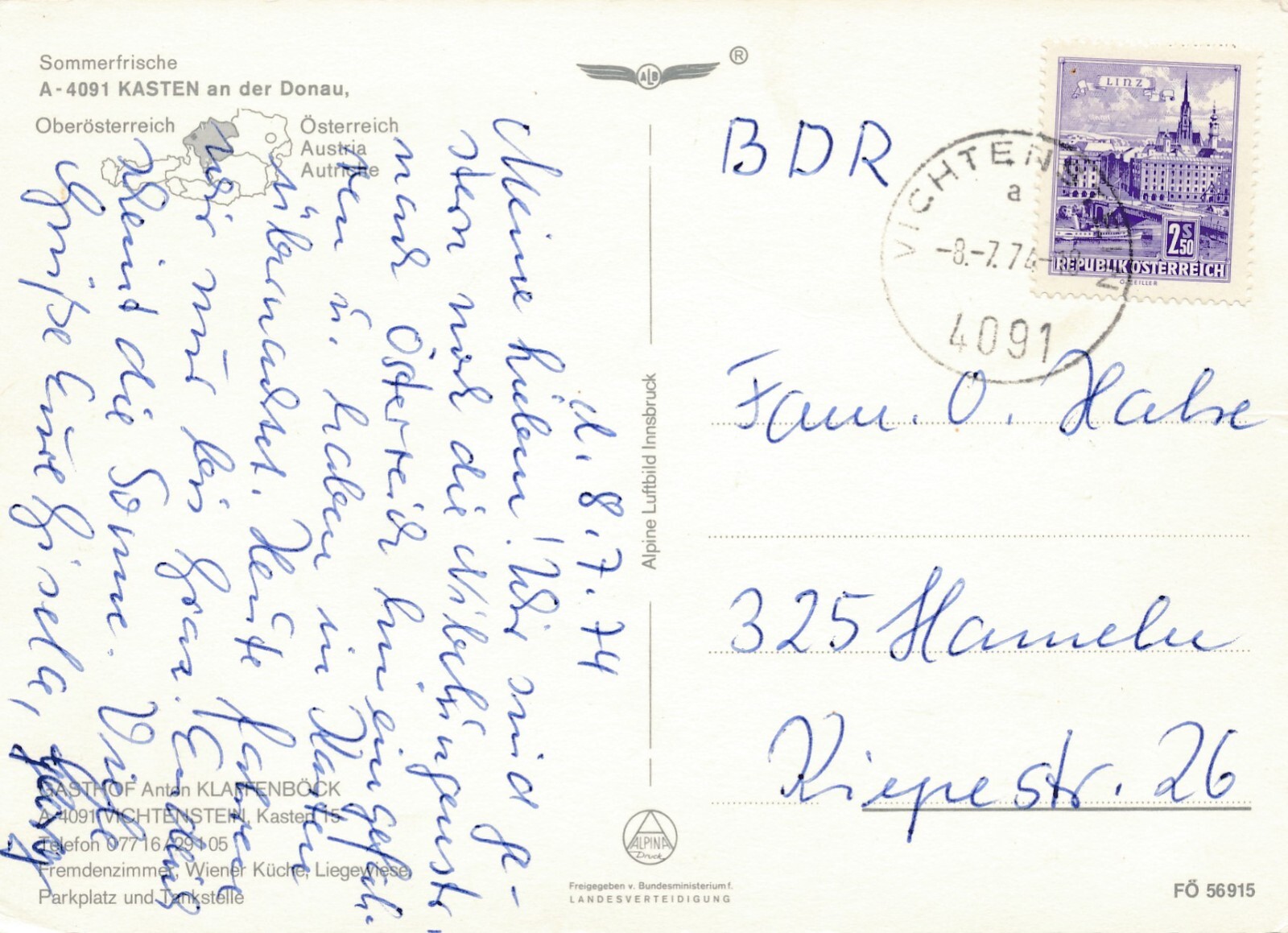 Alpine - Luftbild aus Kasten Oberösterreich Ansichtskarte (11555)