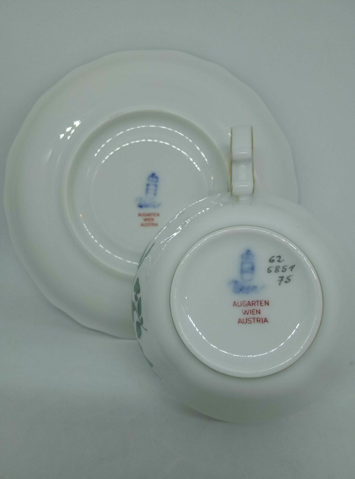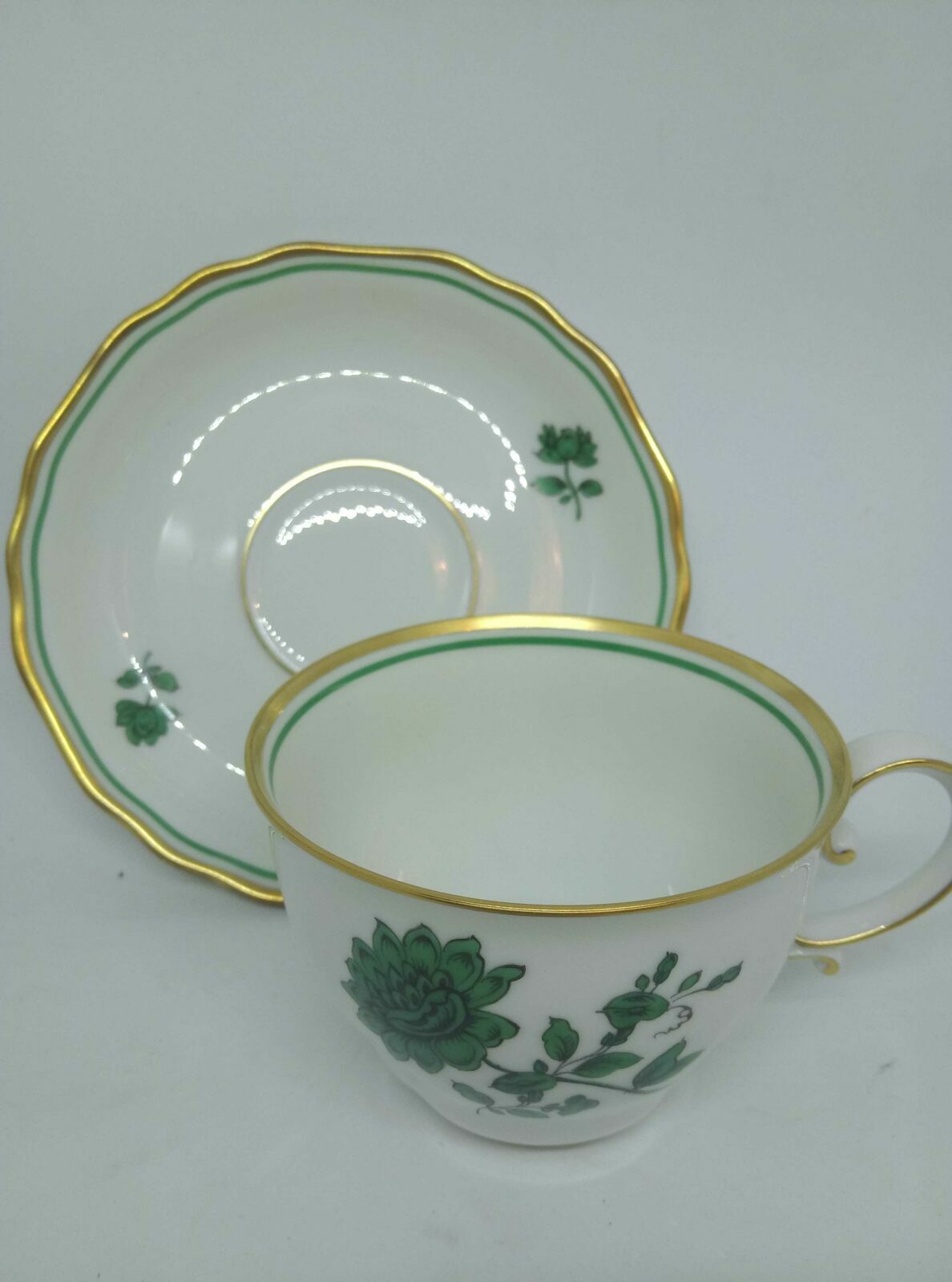 Augarten Tasse mit Untertasse Dekor grüne Rosen 62 5851 75 mit Goldrand 60216