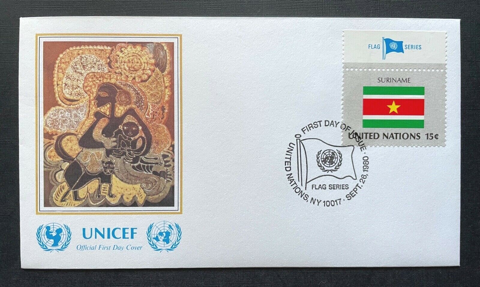 Brief Unicef FDC Flagge Suriname Irodikromo Mother Child ca.16,4x9,2cm 410296 PR