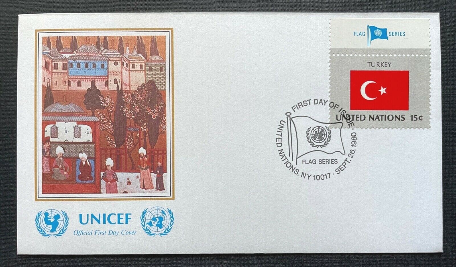 Brief Unicef FDC Flagge Turkey Osman Hunername ca.16,4x9,3cm 410310 PR