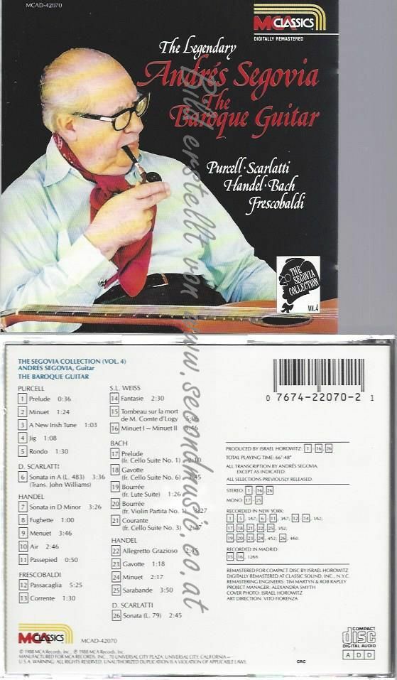 CD--ANDRES SEGOVIA | --BAROQUE GUITAR VOL.4