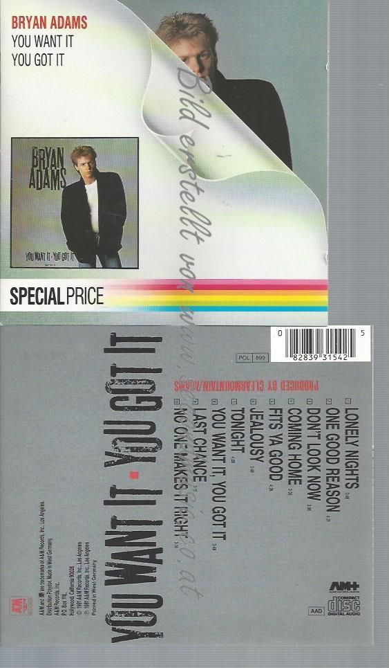 CD--BRYAN ADAMS --YOU WANT IT YOU GOT IT