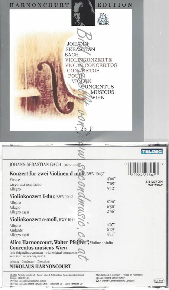 CD--J. S. Bach; Violin Cs. Pfeiffer. Harnoncourt