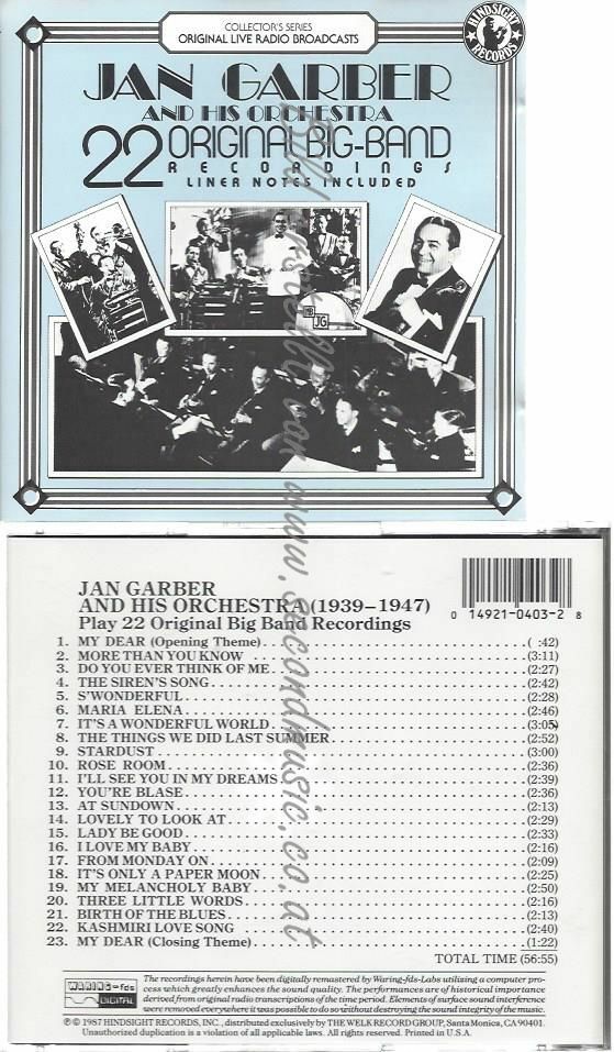 CD--JAN GARBER | --PLAYS22 ORIGINAL BIG BAND REC
