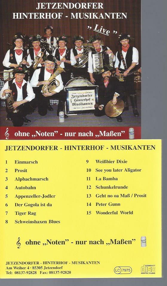CD -JETZENDORFER HINTERHOF MUSIKANTEN OHNE NOTEN NUR NACH MASSEN