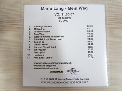 CD / MARIO LANG-MEIN WEG / PROMO / AUSTRIA / RAR /