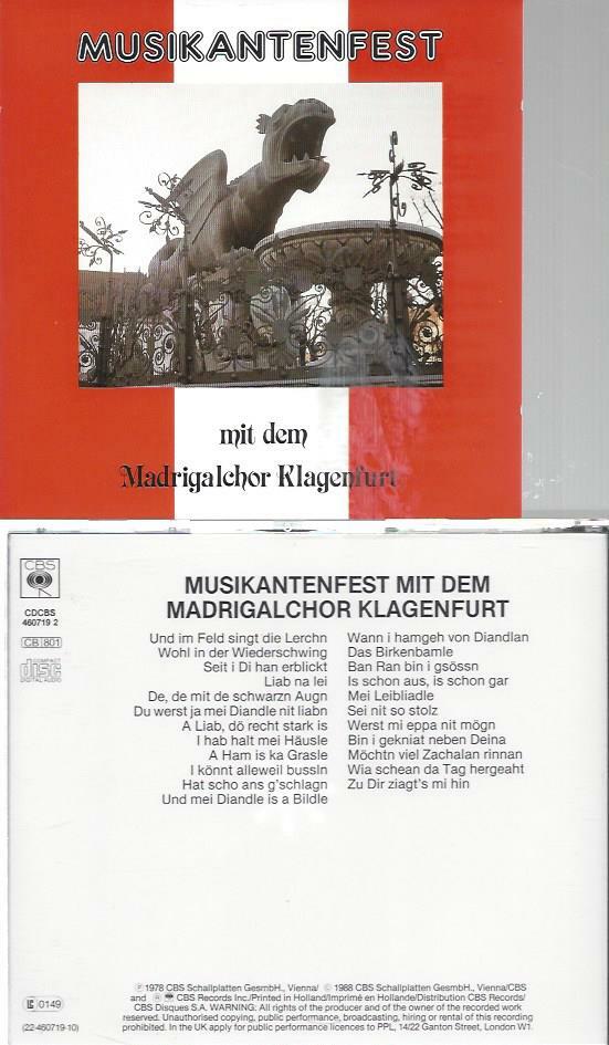 CD--Musikantenfest mit dem Madrigalchor Klagenfurt