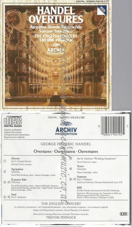 CD--PINNOCK/ECT | --HÄNDEL: OUVERTÜREN - AGRIPPINA, ALCESTE, IL PASTOR FIDO