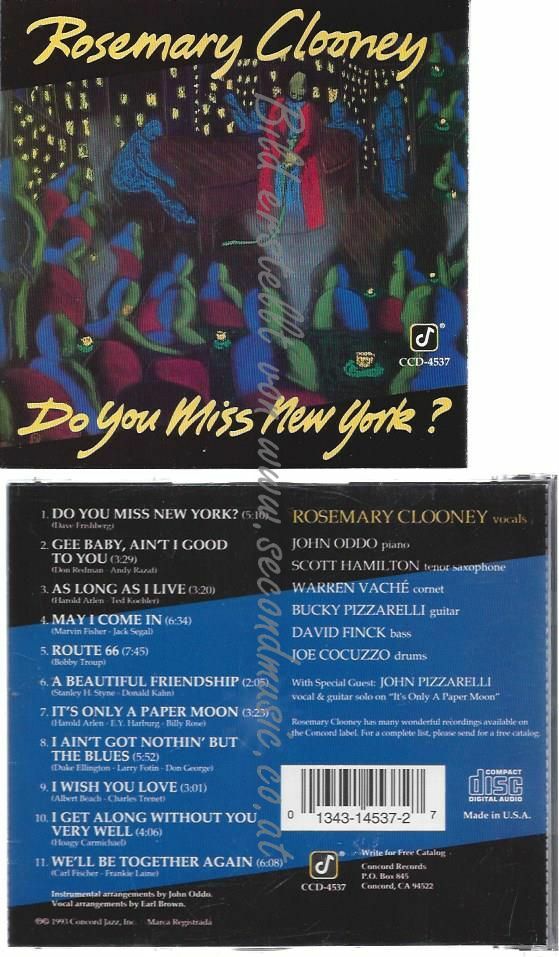 CD--ROSEMARY CLOONEY | --DO YOU MISS NEW YORK