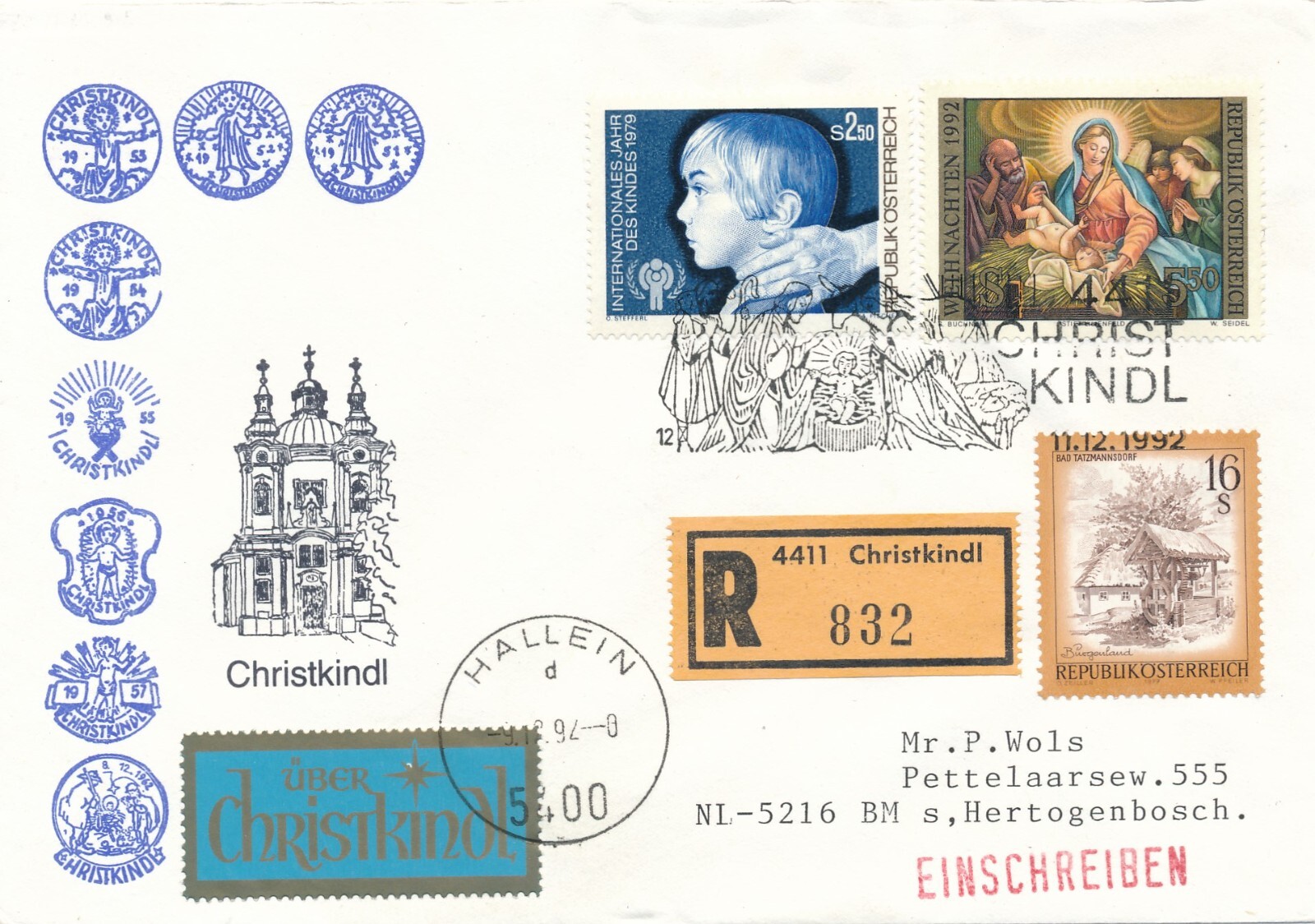 Christkindl - Reco - Brief 11.12.1992 + LZ Hallein (11590)