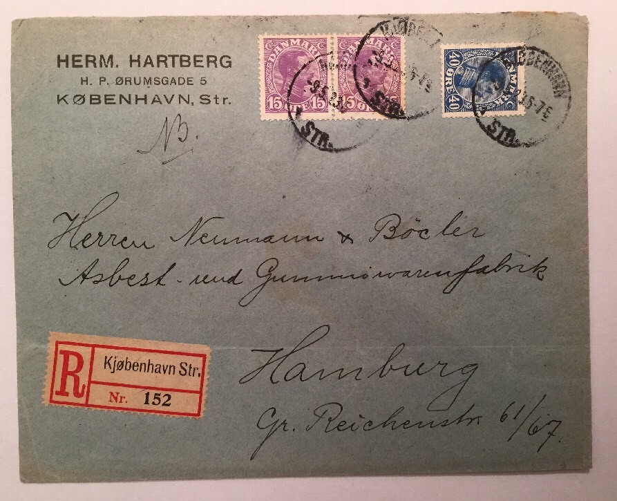 Dänemark Danmark Registred 1923 15.5 x 12.5 cm nach Hamburg A14209