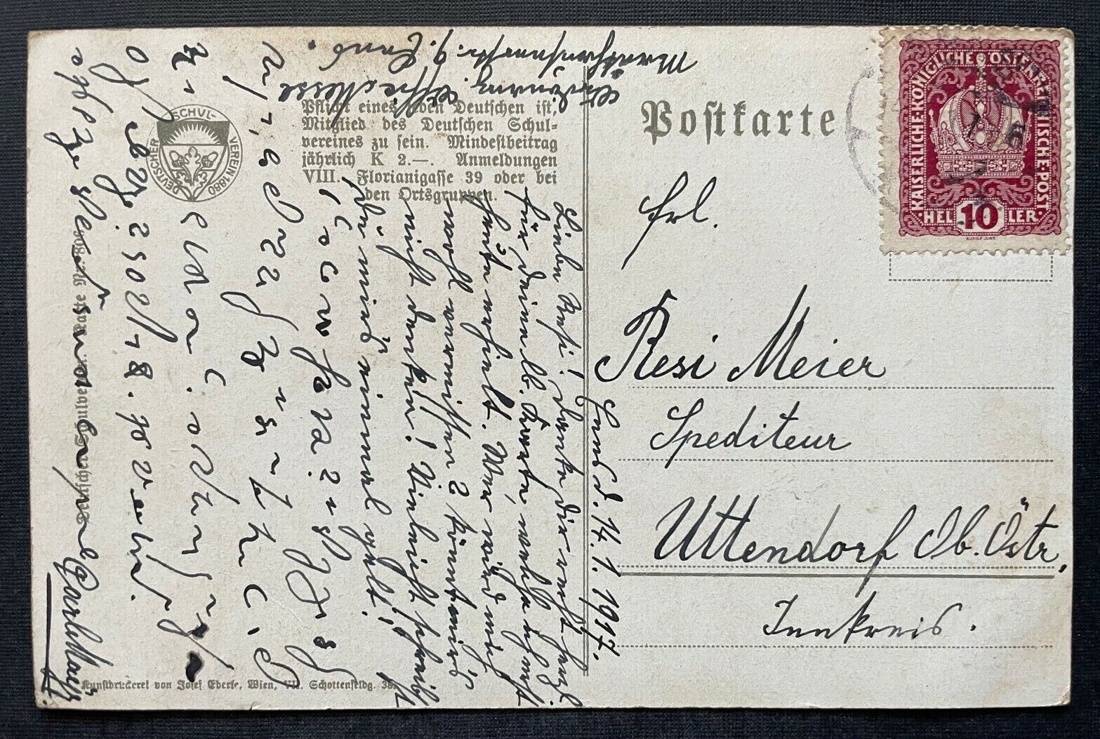Deutscher Schulverein Treue Spruch Handschlag Mann Tracht Stock Glas 400331 TH A