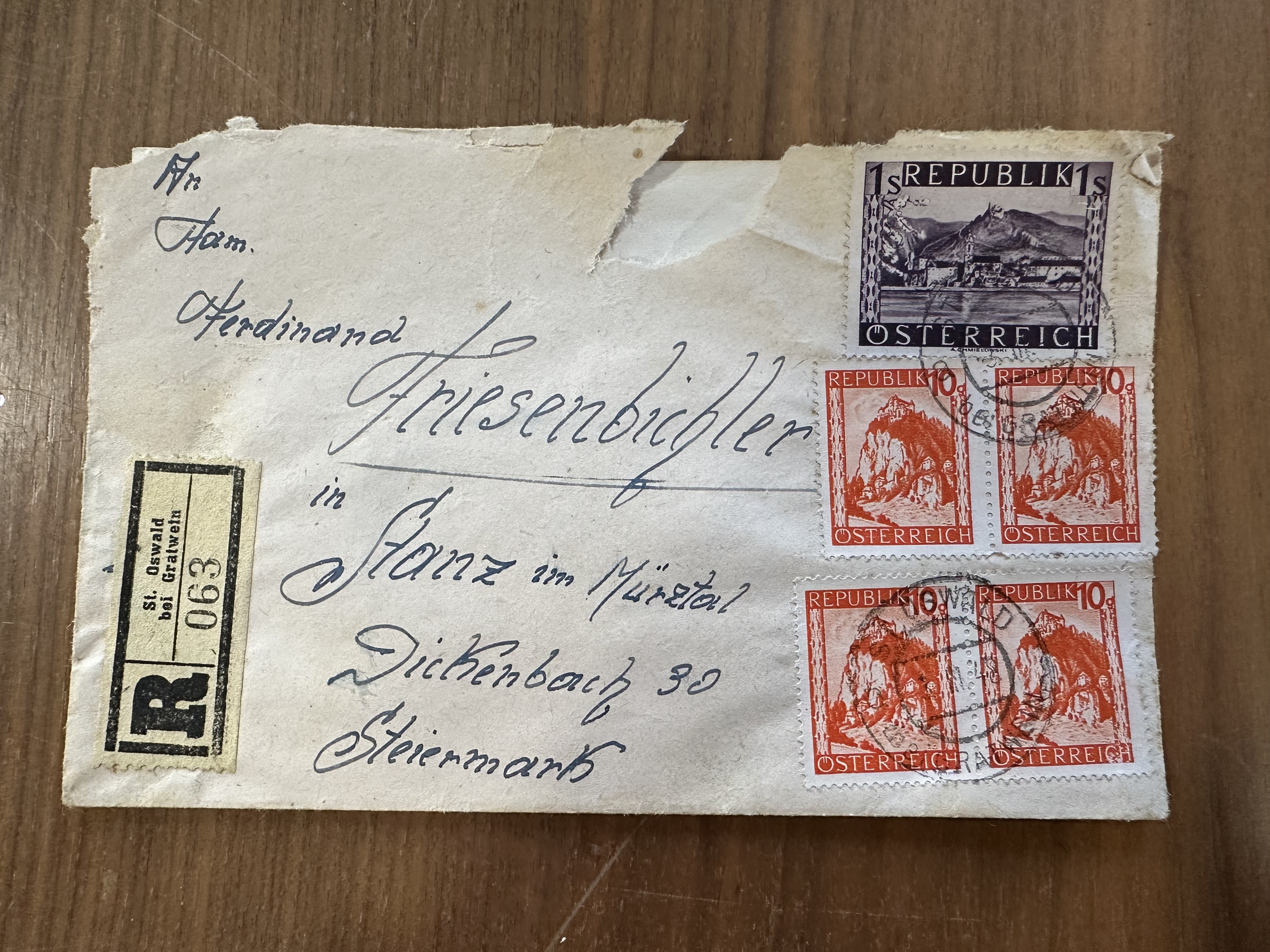 Gelaufen, Einschreibbrief, 1948, Brief enthalten! Marken siehe Foto