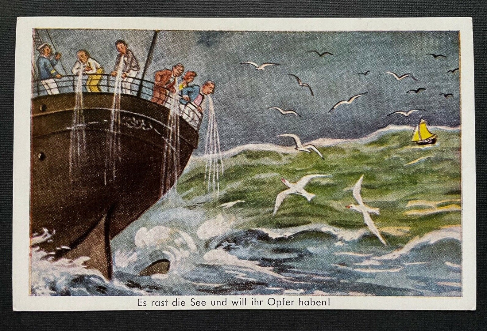 Es rast die See Opfer Seekrank Schiff Möwe Wellen Meer Boot Cartoon 401070 TH A