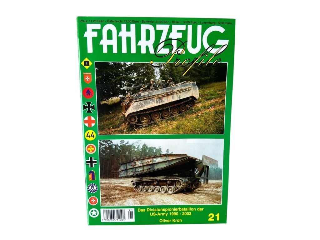 Bemerkungen: Zusammenfassung des Inhalts der gezeigten Publikation: Titel: "Fahrzeug Profile 21: Das Divisionspionierbataillon der US-Army 1990-2003" von Oliver Kroh, erschienen im Unitec-Medienvertrieb. Inhalt: Das Heft beschreibt die vielfältige Ausrüstung und die Aufgaben der US-Divisionspioniere, insbesondere deren Entwicklung basierend auf den Erfahrungen des Golfkriegs. Ausstattung: Die Publikation enthält zahlreiche Fotos zur Veranschaulichung der Ausrüstung. Zustand: 2 - Sehr guter Zustand. Leichte äußere Gebrauchsspuren (z.B. minimal abgeriebene Kanten), innen jedoch sauber und ohne Markierungen. Bindung fest. Regalux 5 oben hinten