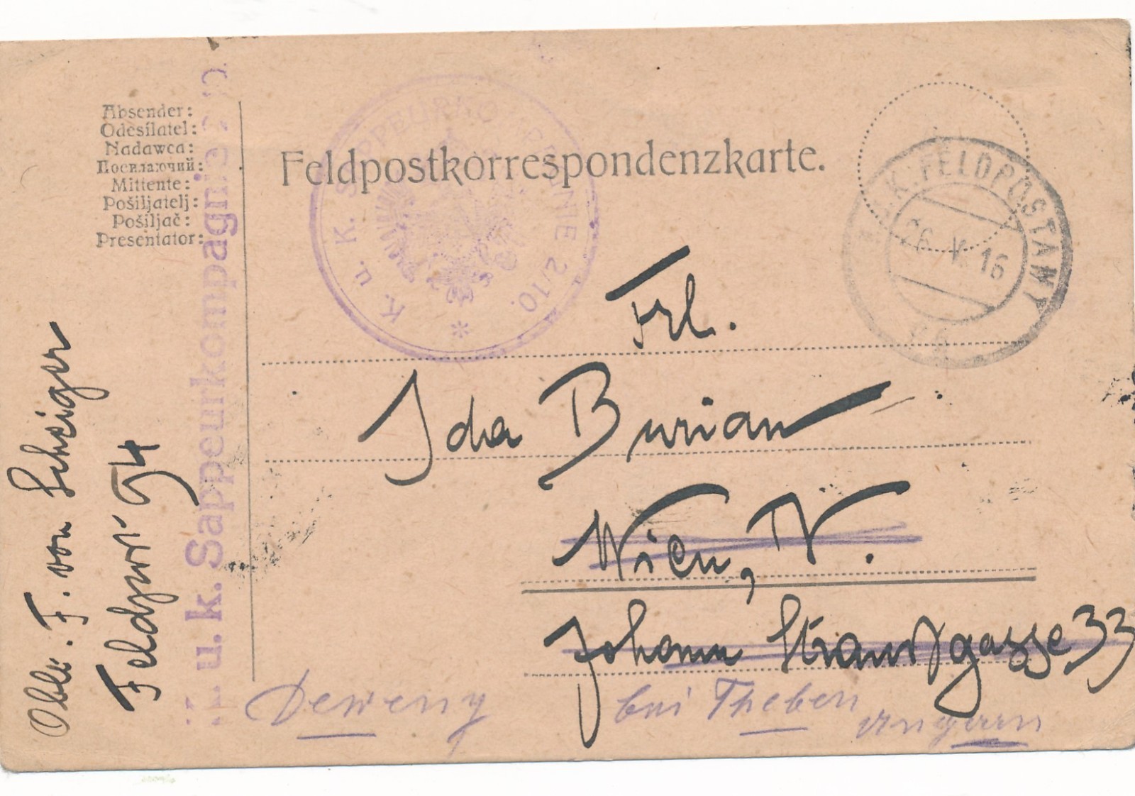 Feldpost - Karte K.u.K Sappeurkompagnie (16944)
