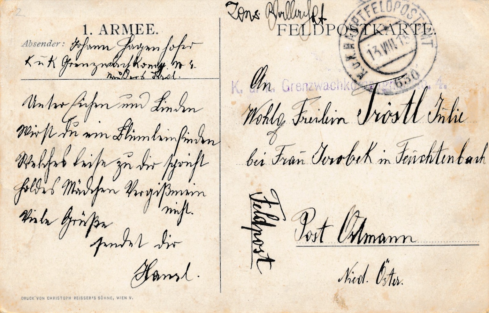 Feldpostkarte 650 KuK Grenzwachkompagnie Nr.4 Militaria Ansichtkarte (15717)