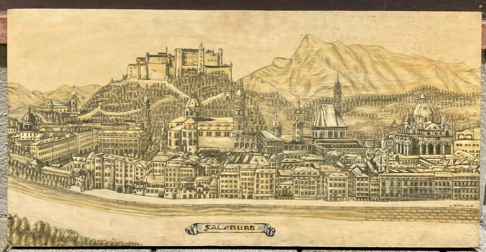 Festung Hohensalzurg Rahmenlos auf Holz gemalt 100 x 50 cm 300001
