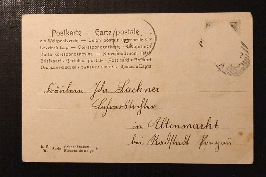 Frau Mit Hut Winter Schneeflocken Künstlerkarte Gr E 410467