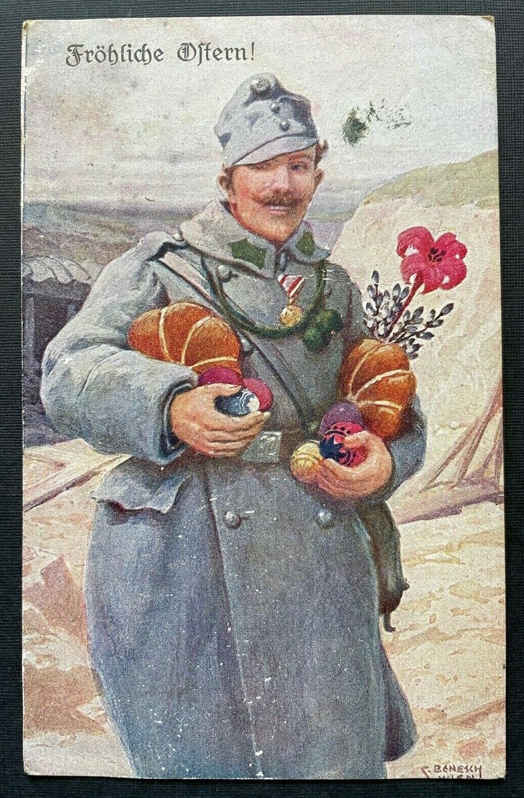 Fröhliche Ostern Soldat Ostereier Blumen Uniform Feldmütze Orden 400311 TH G