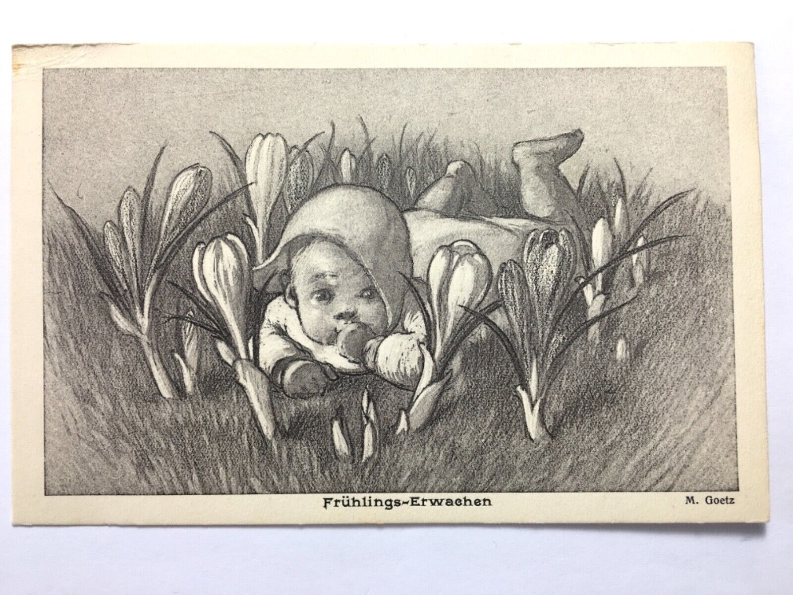 Frühlings-Erwachen (M. Goetz) - Baby in Blumenwiese - Künstlerkarte 40199 TH
