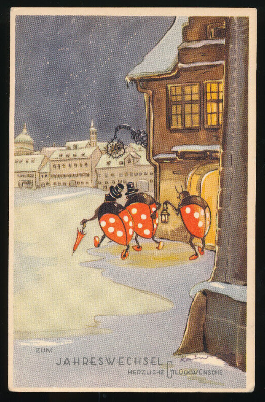 Glückwunsch-Karte zum Jahreswechsel mit drei Marienkäfer (612)