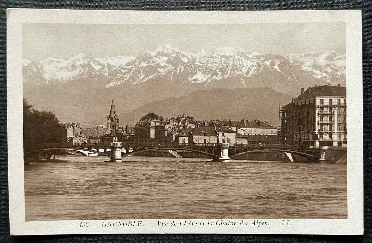Grenoble Blick Isère Alpenkette Stadt Brücke Gebäude Kirche Frankreich 402623 C