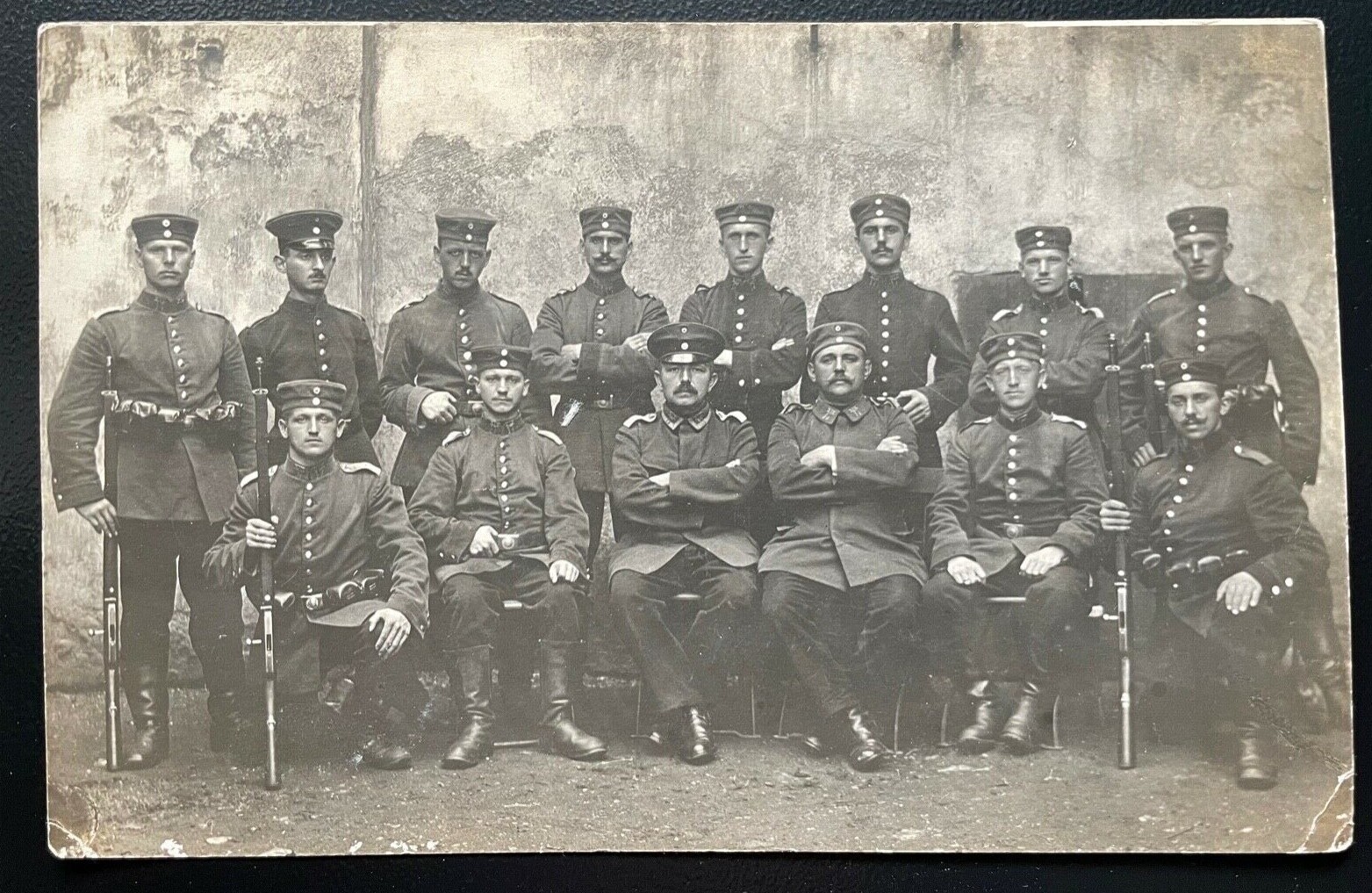 Gruppenaufnahme Soldaten Uniform Schirmmütze Bart Gewehr Militär Krieg 400585 TH