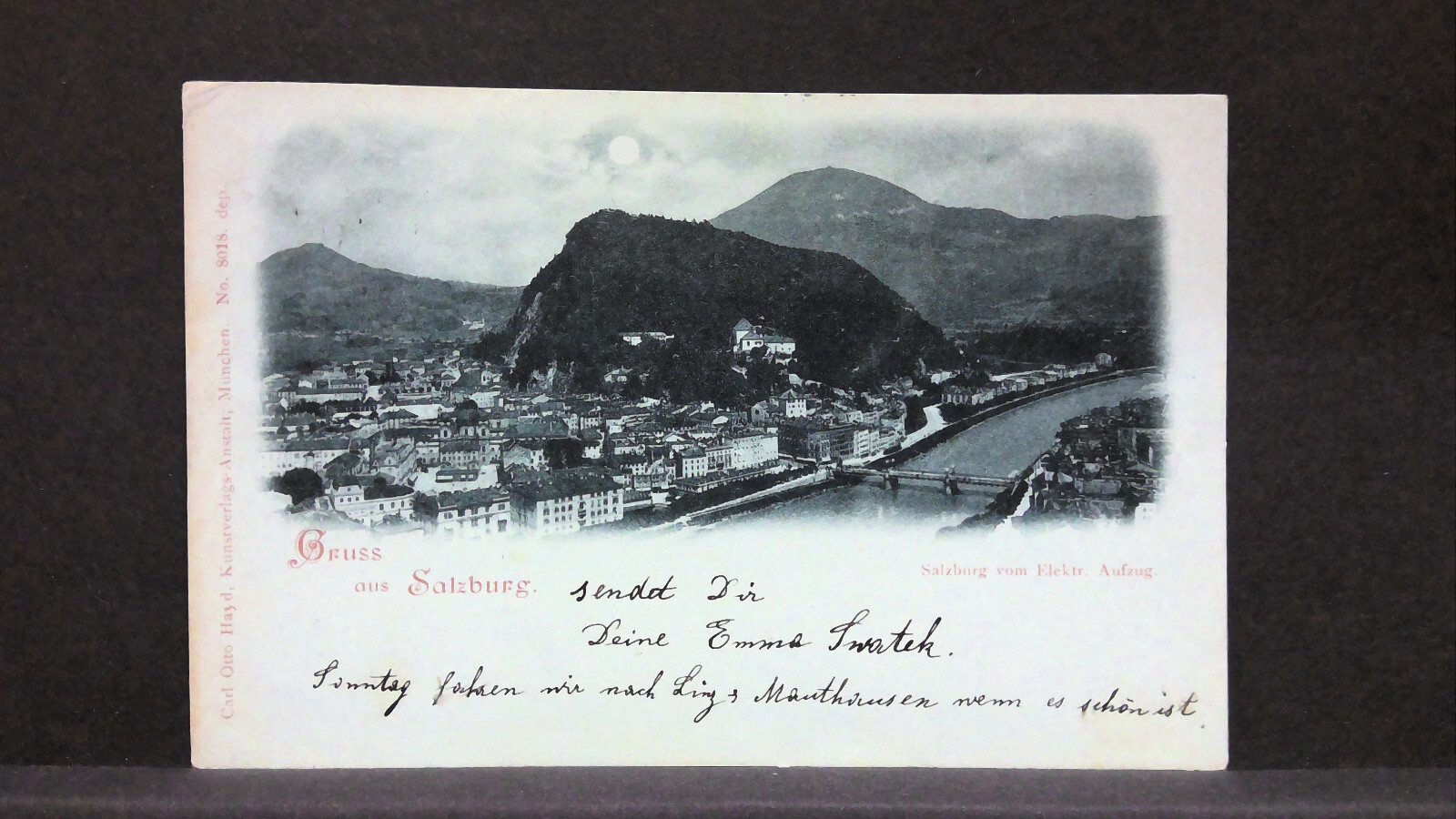 Gruss aus Salzburg vom Elektrischen Aufzug Mondkarte JW5886