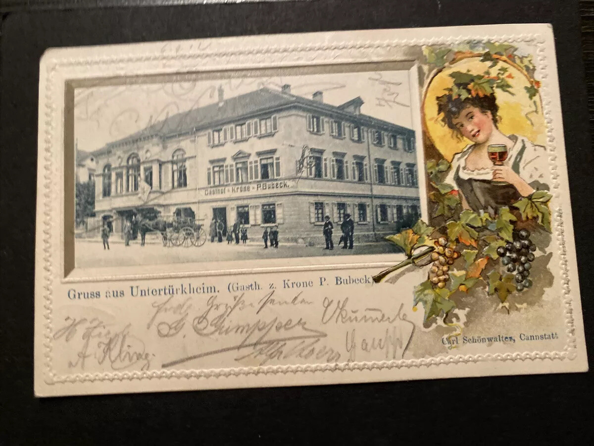 Gruss aus Untertürkheim Stuttgart Gasthof zur Krone Prägekarte 80212