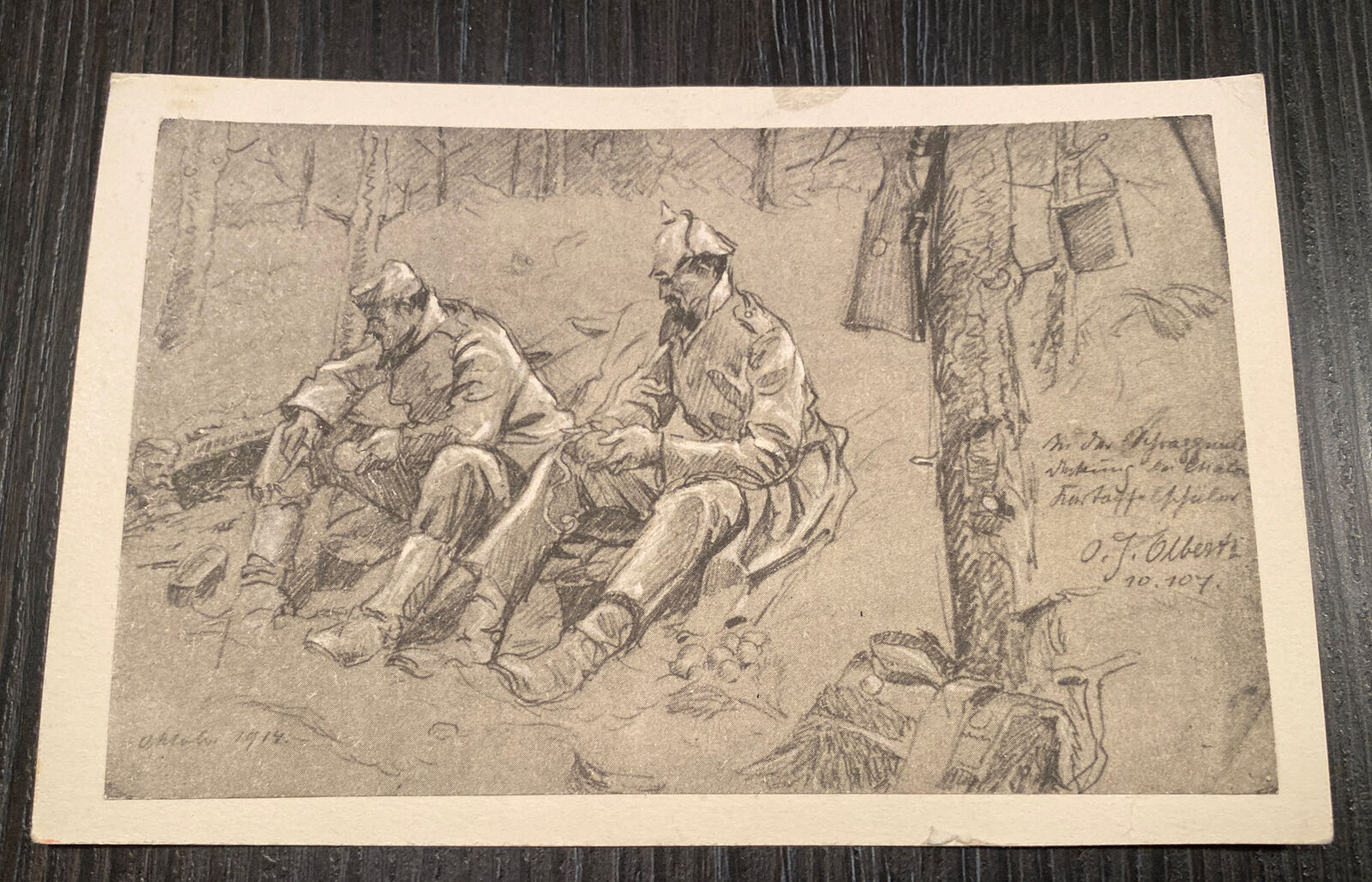Handgezeichnete Karte I Weltkrieg Soldatenleben Soldaten Oktober 1914 80149