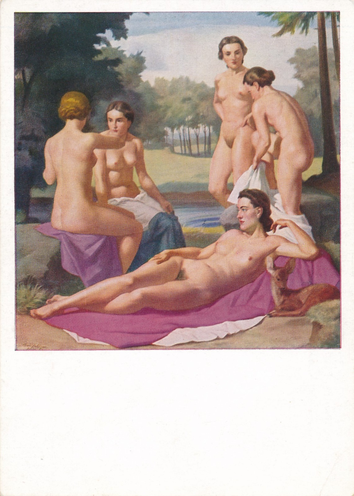 HDK Karte Das Bad der Diana Nackte Frau Akt Busen Ansichtskarte (16190)
