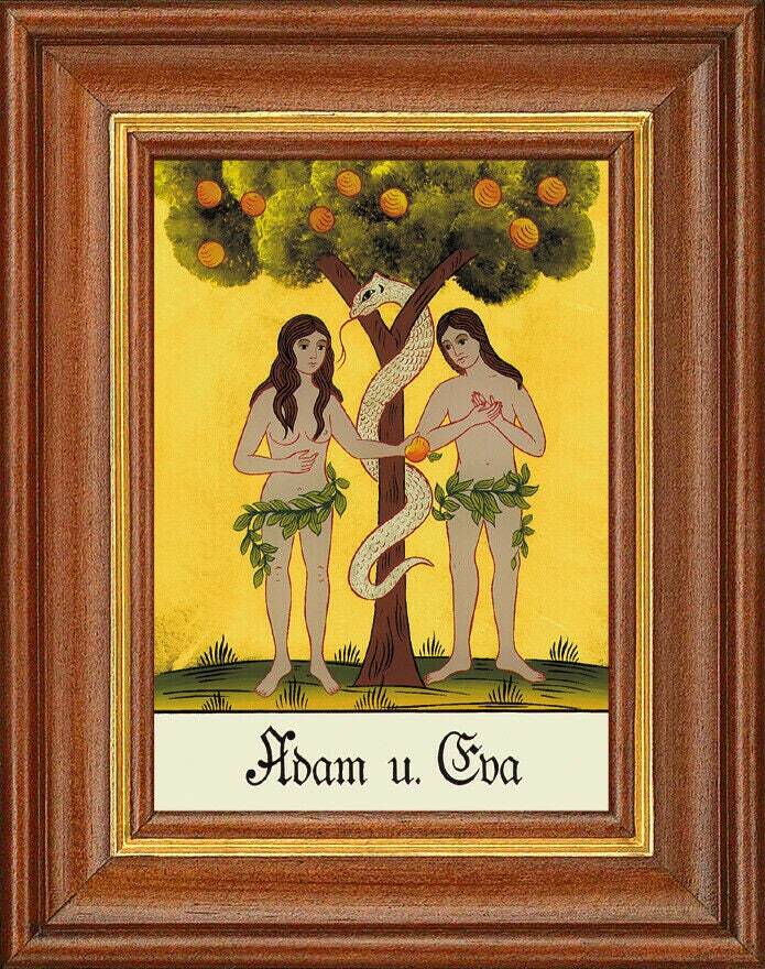 Hinterglasbild - adam u. eva - patronatsbild taufe namenspatron 12,7x16 th