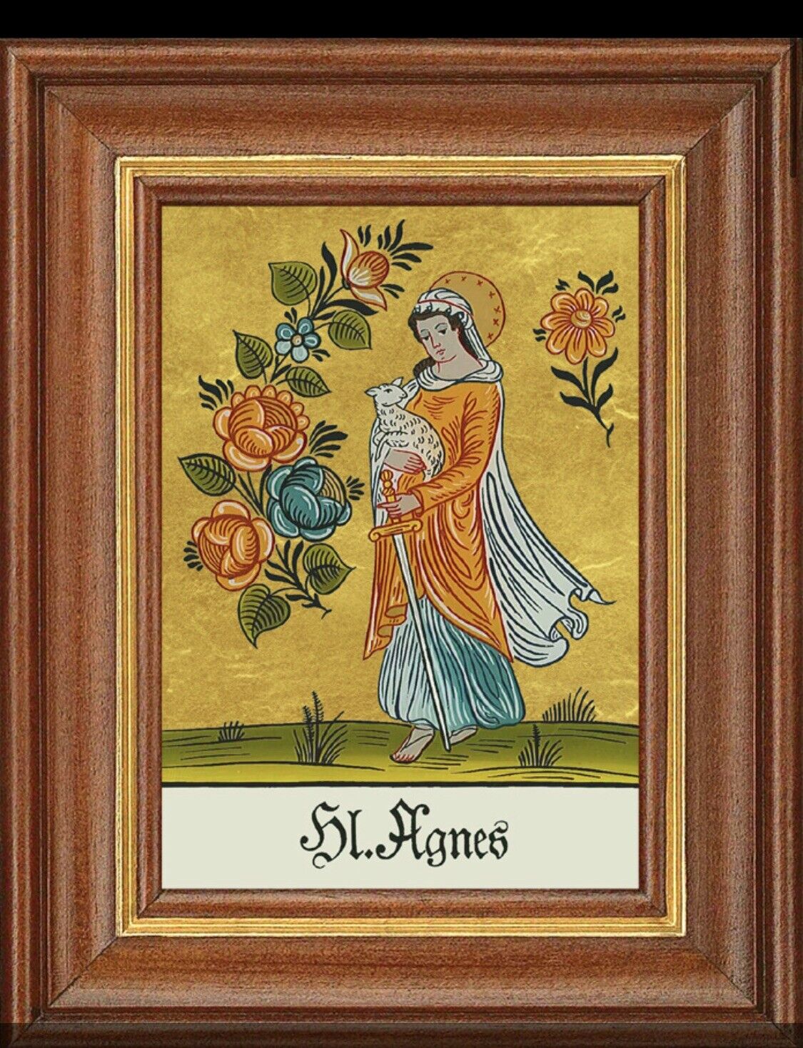 Hinterglasbild Heilige Agnes Patronatsbild Taufe Namenspatron 12,7x16