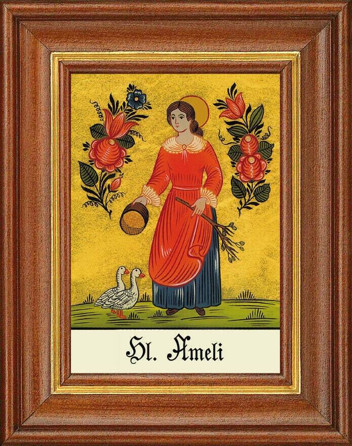 Hinterglasbild - heilige ameli - patronatsbild taufe namenspatron 12,7x16 th
