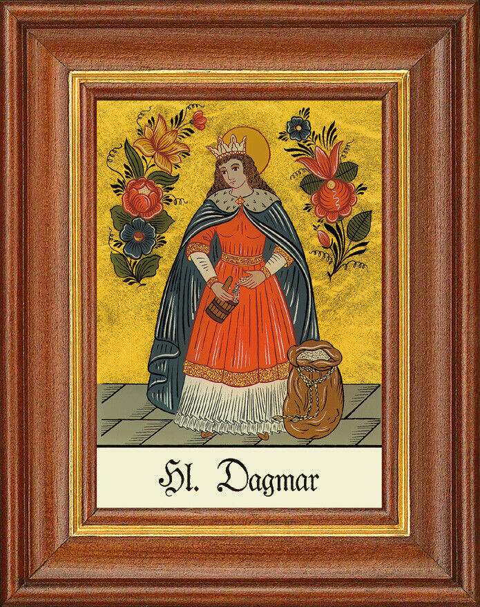 Hinterglasbild - Heilige Dagmar - Patronatsbild Taufe Namenspatron 12,7x16