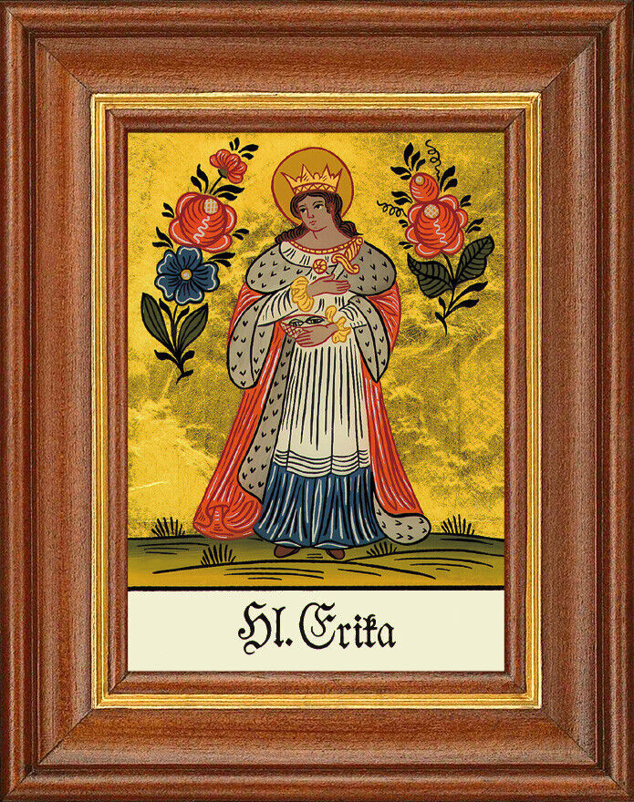 Hinterglasbild - Heilige Erika - Patronatsbild Taufe Namenspatron 12,7x16