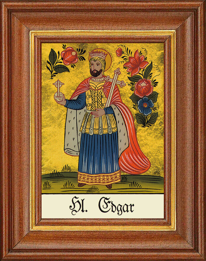 Hinterglasbild - Heiliger Edgar - Patronatsbild Taufe Namenspatron 12,7x16